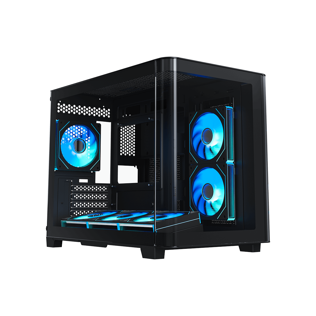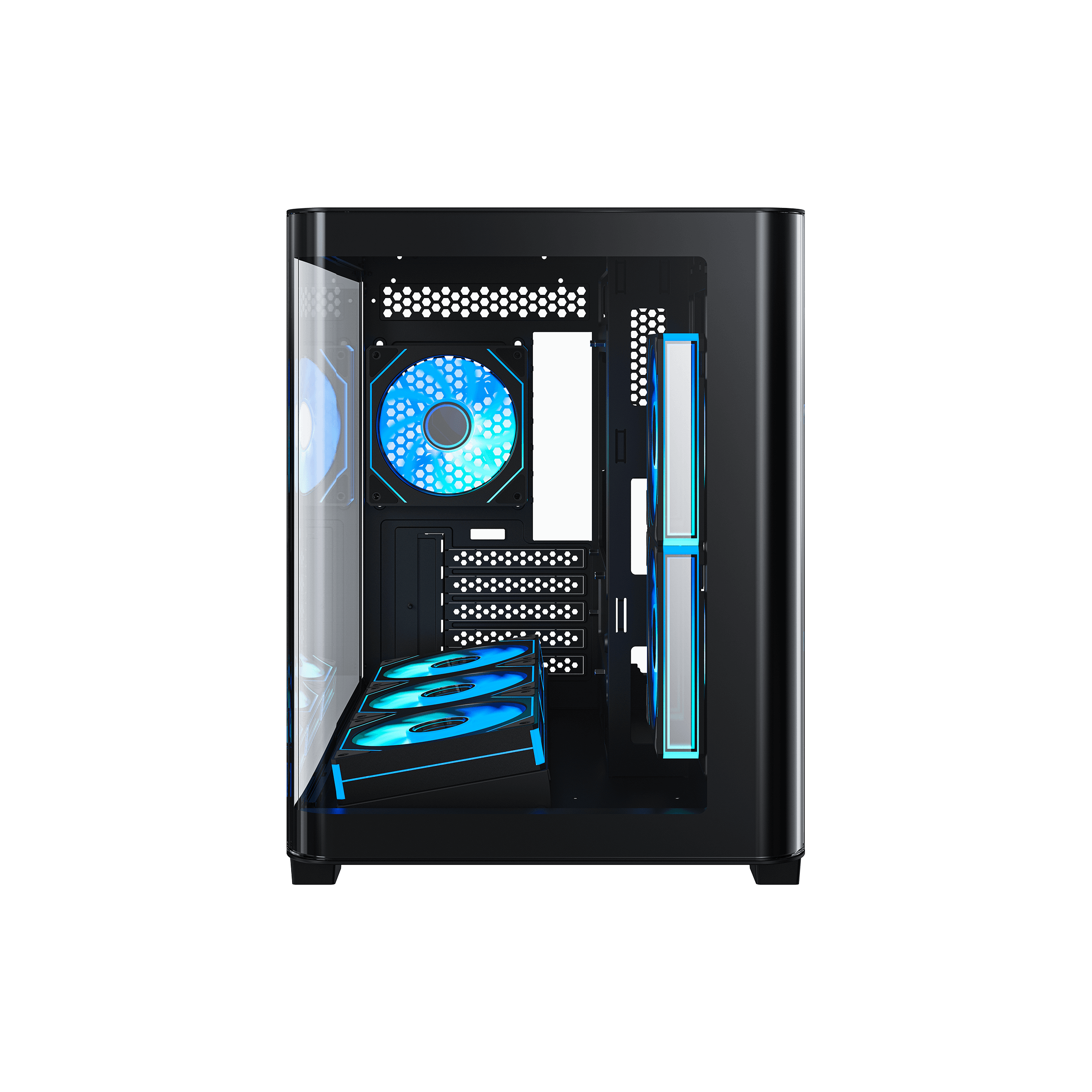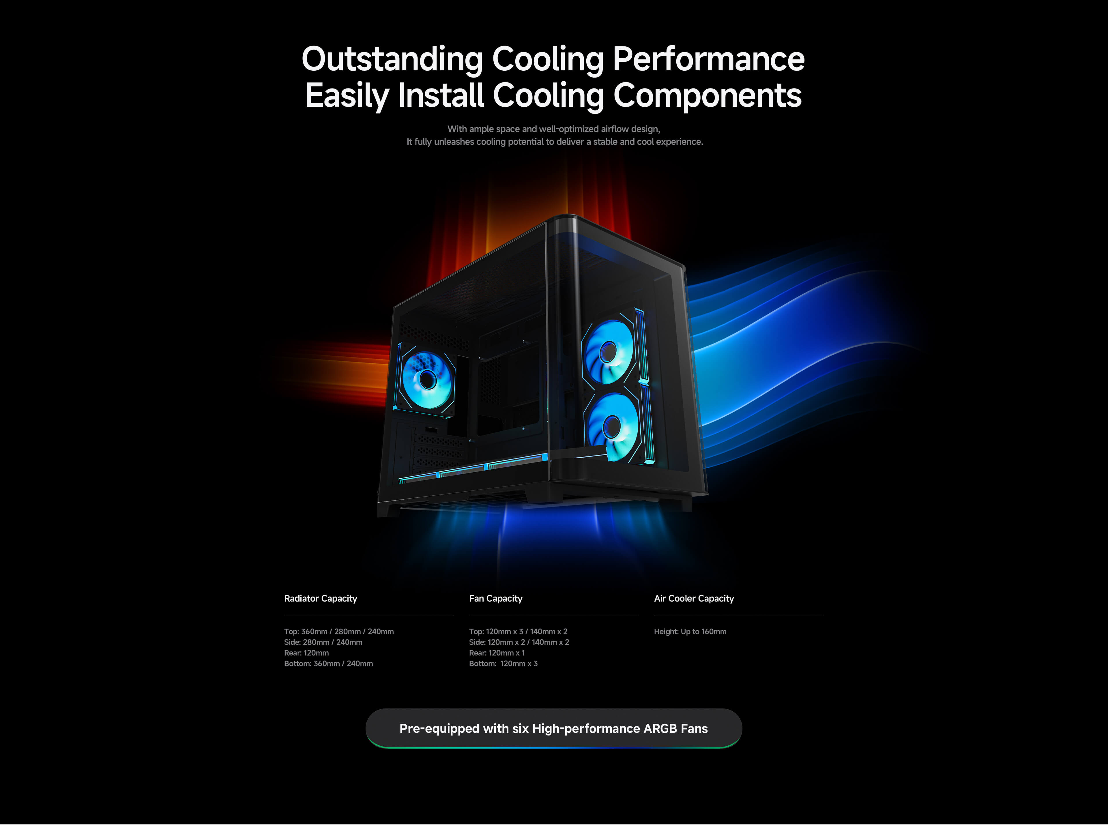 · Include pre-installed six ARGB fans and a 10-port ARGB & PWM HUB for out-of-the-box cooling and RGB lighting.