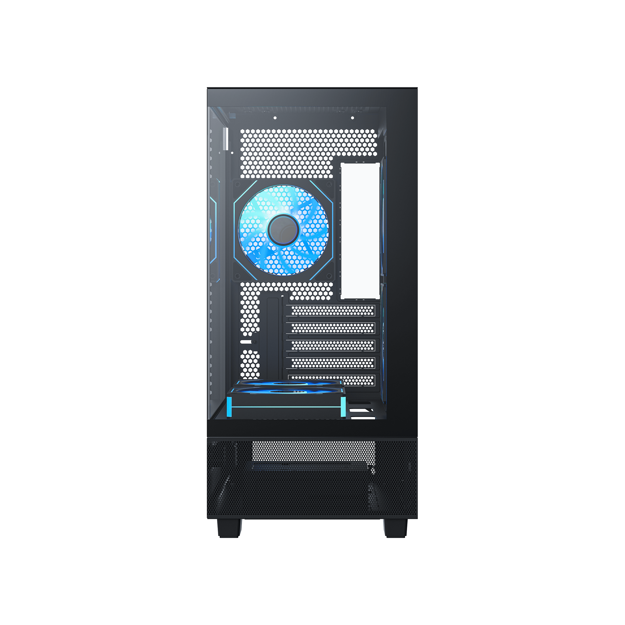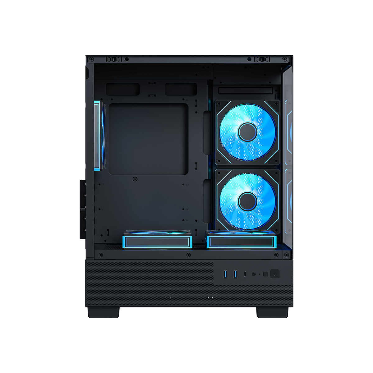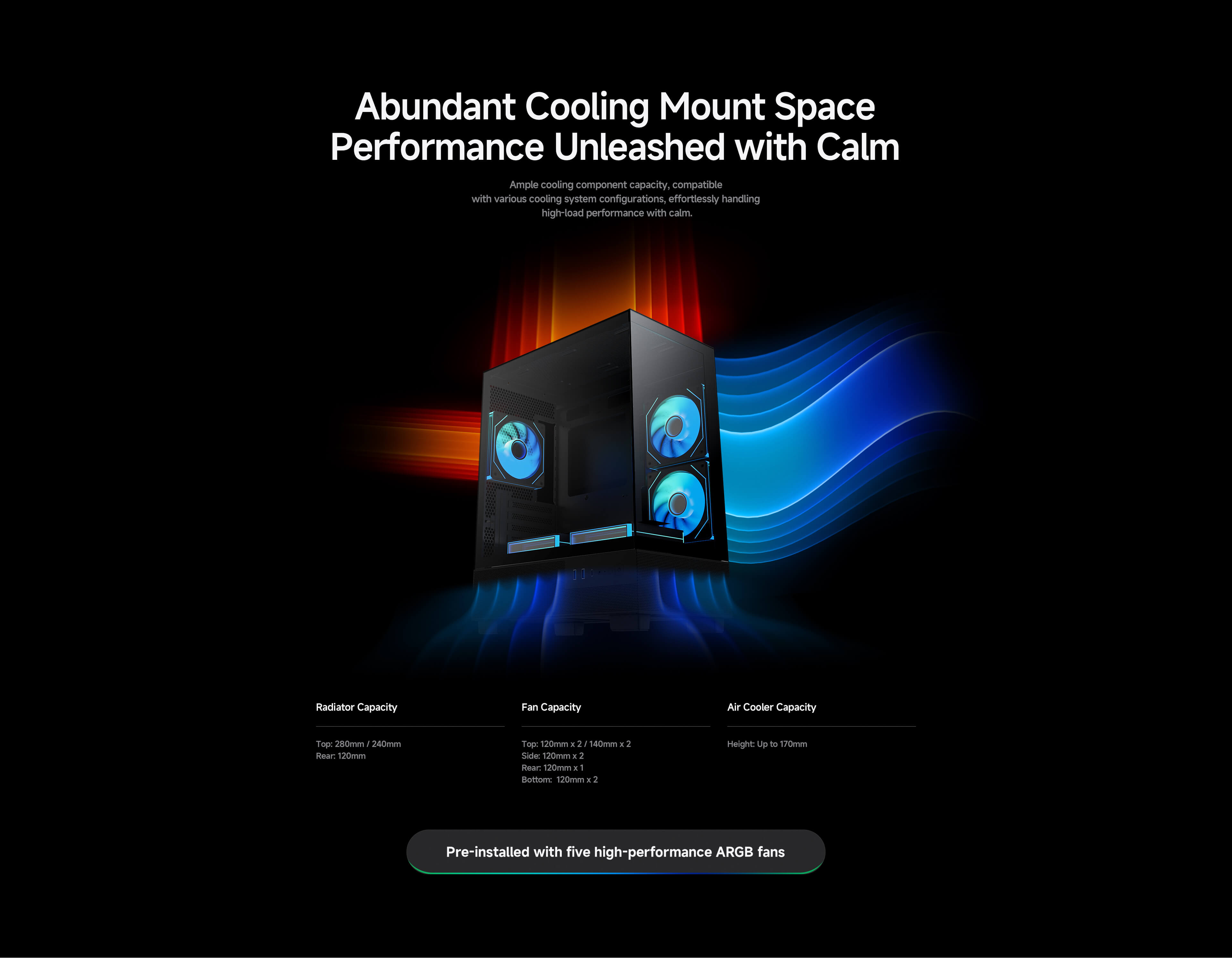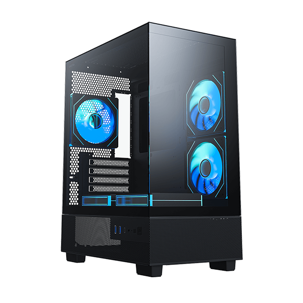 · Pre-installed Fans: Coming with five high-performance ARGB fans across the side, bottom and rear.