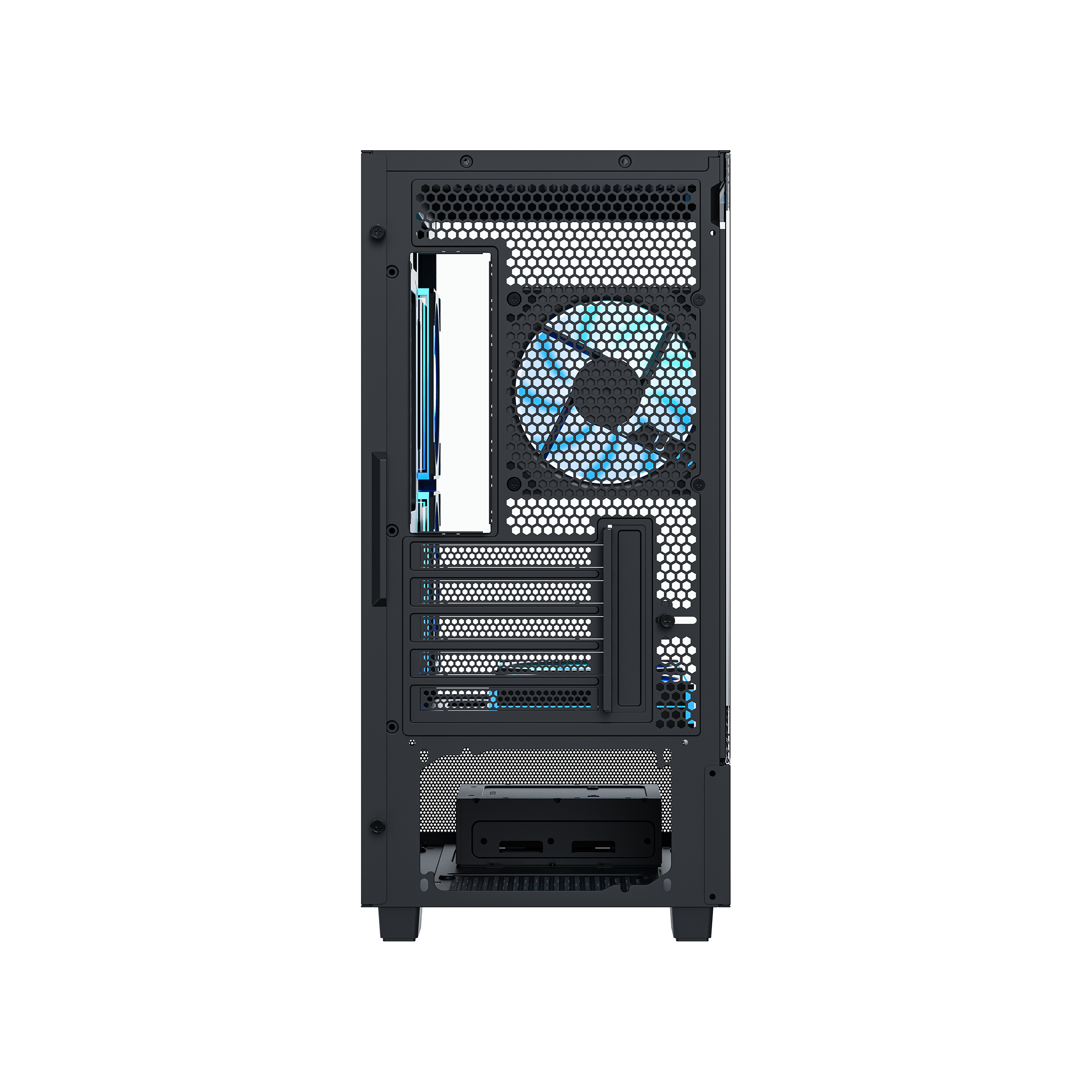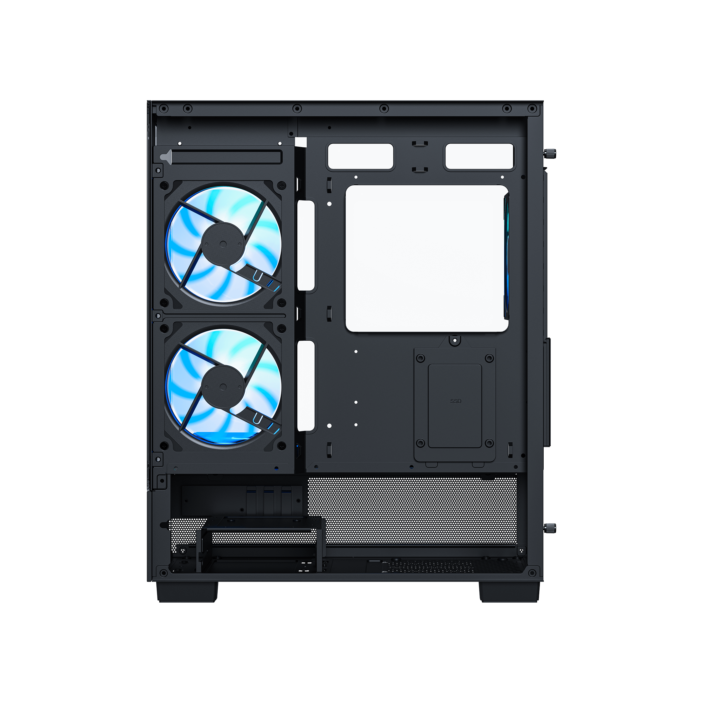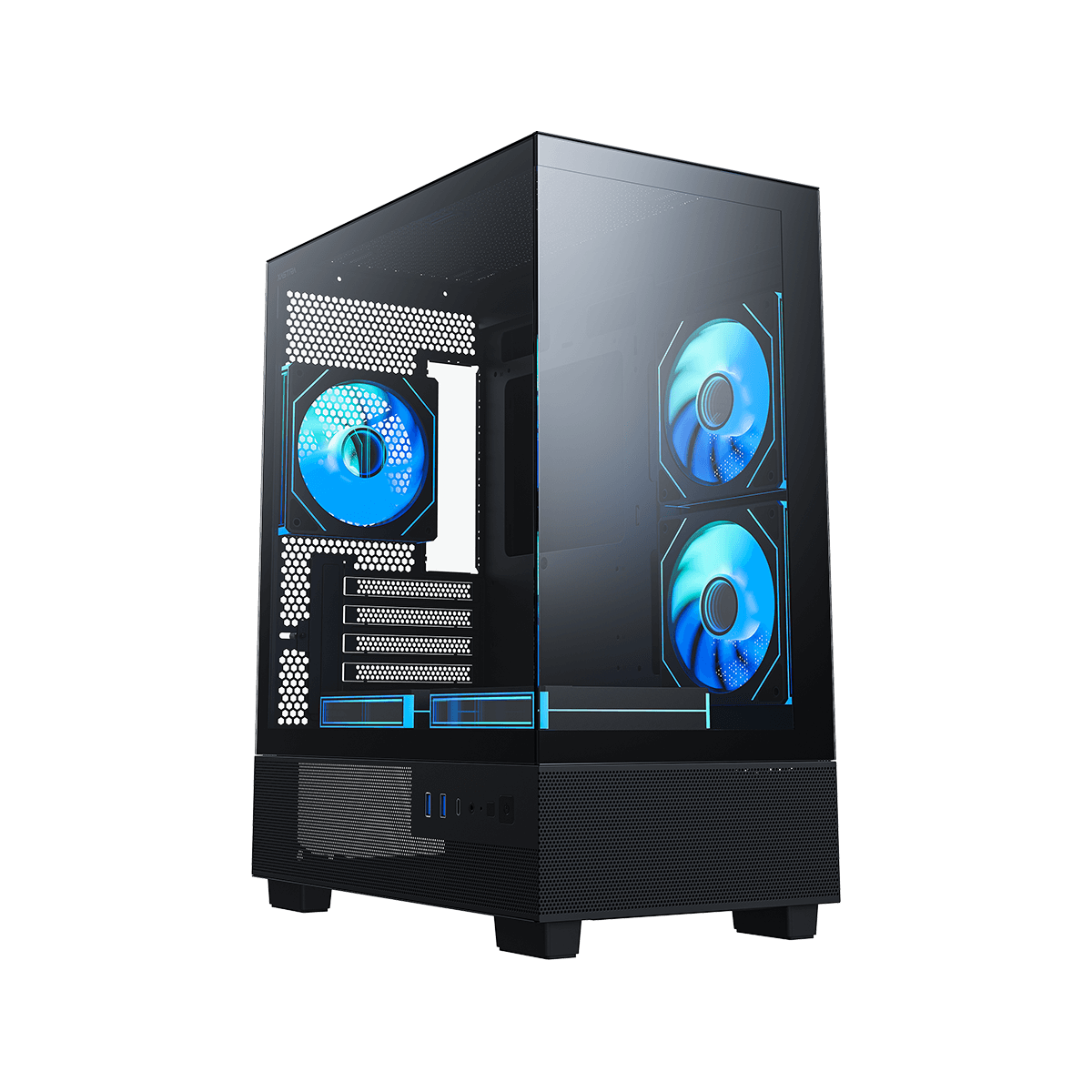 · Pre-installed Fans: Coming with five high-performance ARGB fans across the side, bottom and rear.