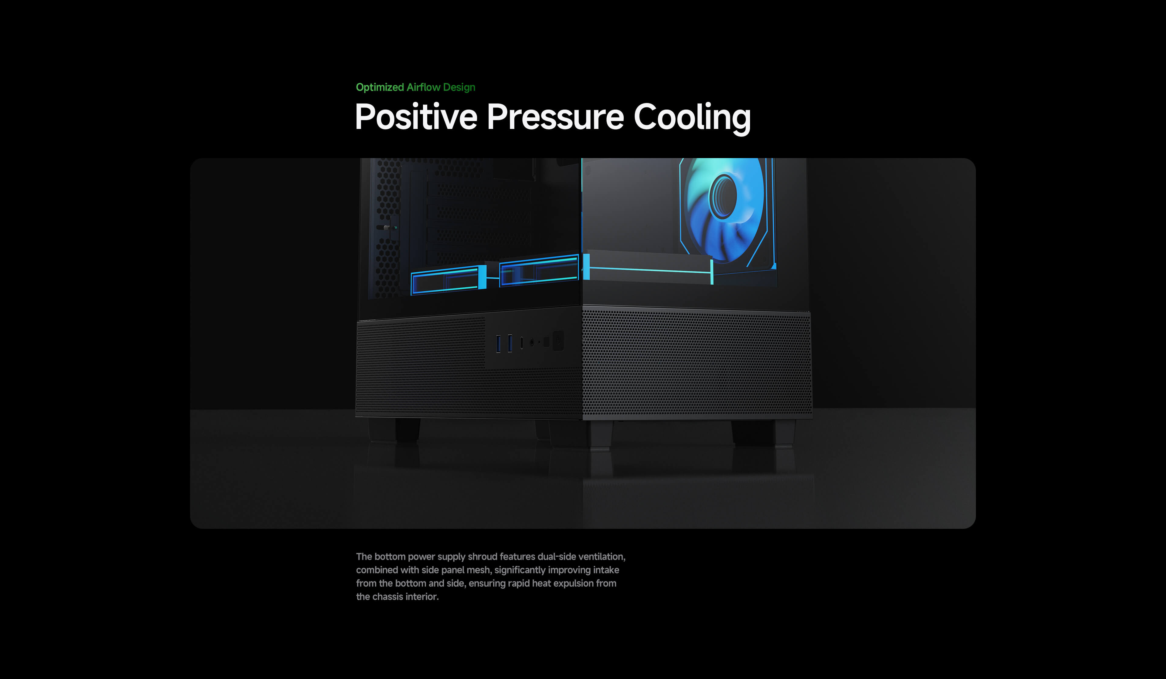· Optimized Airflow: Featuring ventilated PSU shroud and mesh panel of bottom and side to maximize intake.