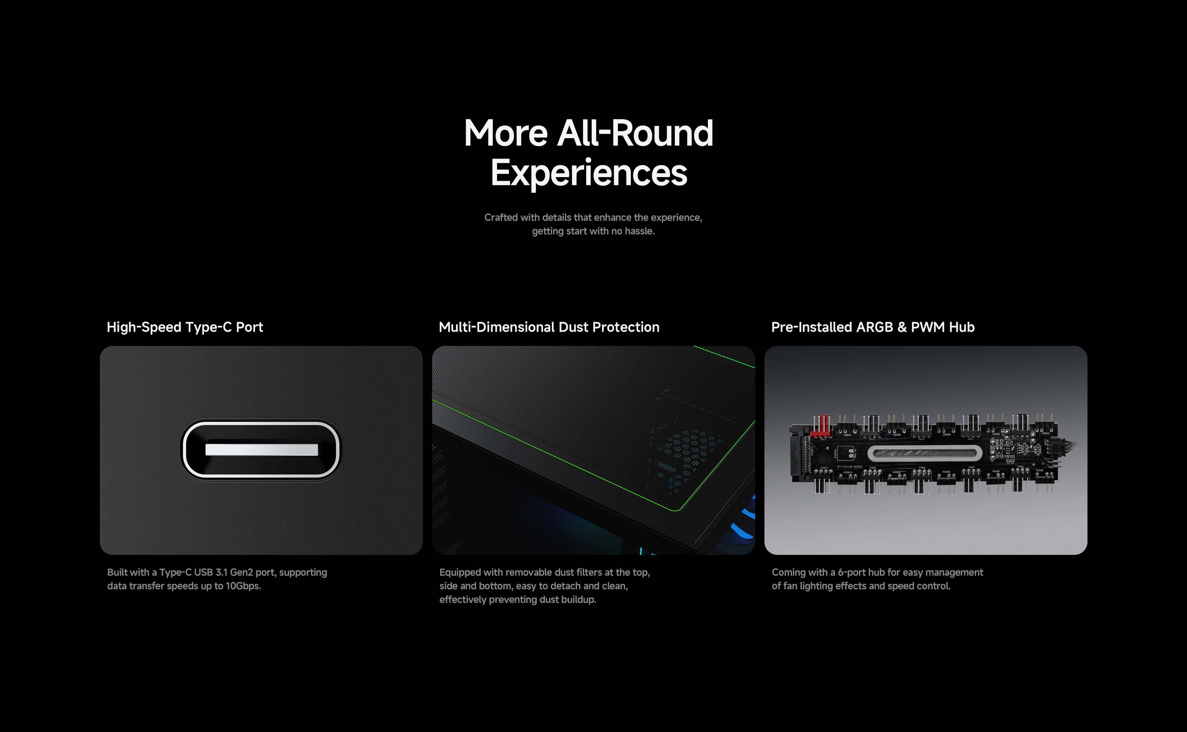 · Included Fan HUB: Equpped with 6-port ARGB & PWM fan hub for speed control and RGB lighting effects.